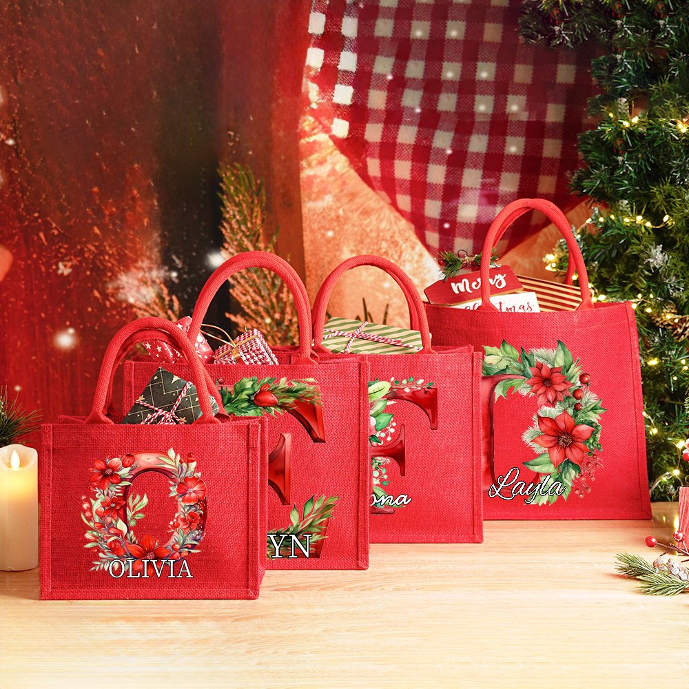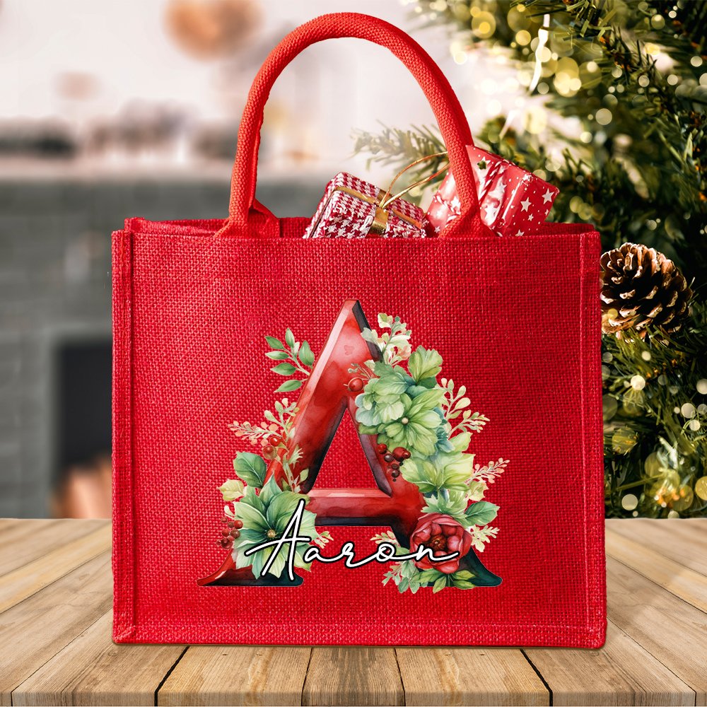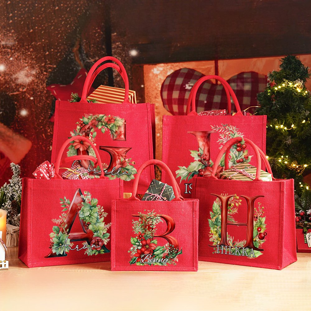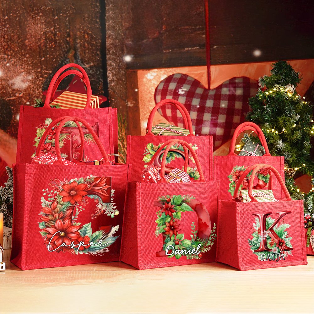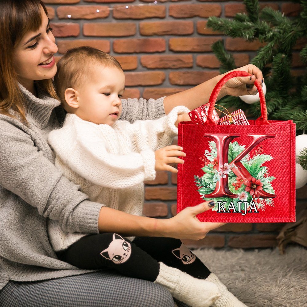Tämä juuttikangaskassi voidaan personoida nimesi ja 3D-kukkien alkukirjaimilla, mikä tekee siitä ainutlaatuisen lisävarusteen päivittäiseen käyttöön tai erityiseksi joululahjaksi. Punainen väri luo täydellisen joulutunnelman, ja tämä laukku piristää mitä tahansa juhlaa.
