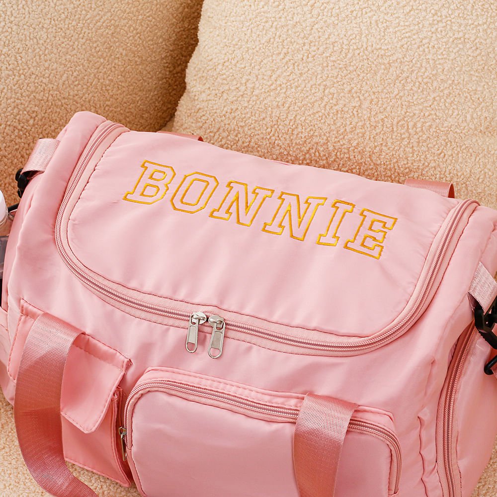 Tässä viikonloppulaukussa on tyylikäs muoto ja kirkkaat värit. Nimi voidaan räätälöidä kirjonta, joka ei ainoastaan tee yleisestä tekstuurista enemmän teksturoitua, mutta ei myöskään ole helppo vahingoittaa. Valittavana on useita erilaisia kirjontavärejä. Valitse suosikkivärisi ja luo tyylikäs ja ainutlaatuinen laukku.