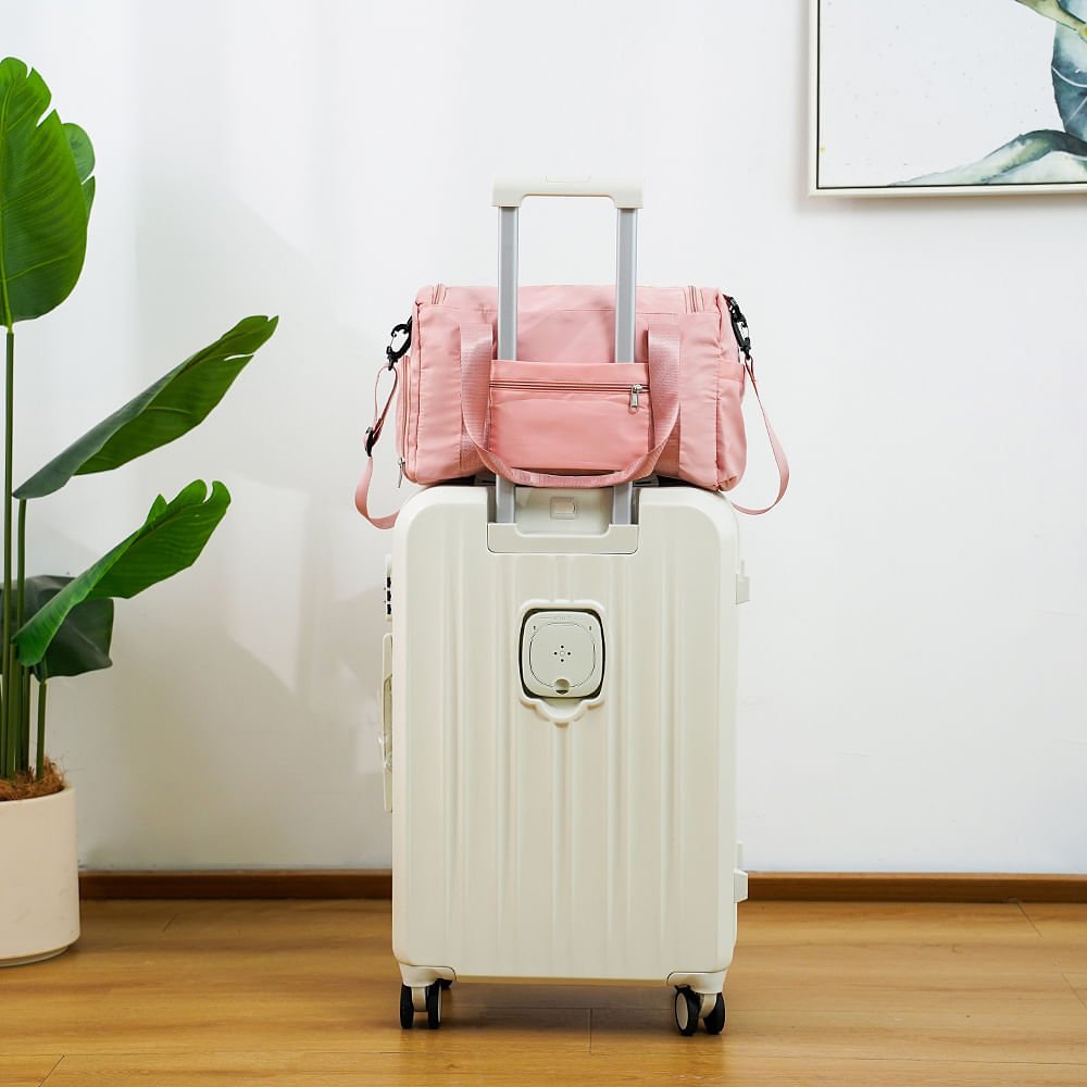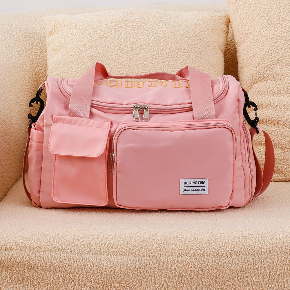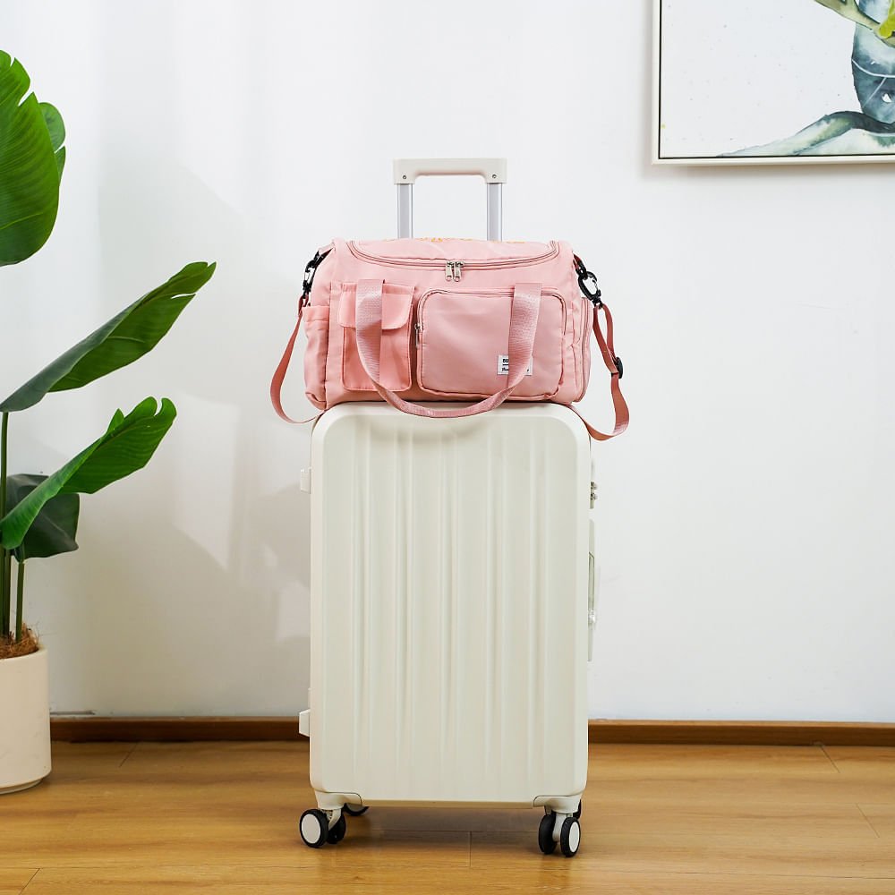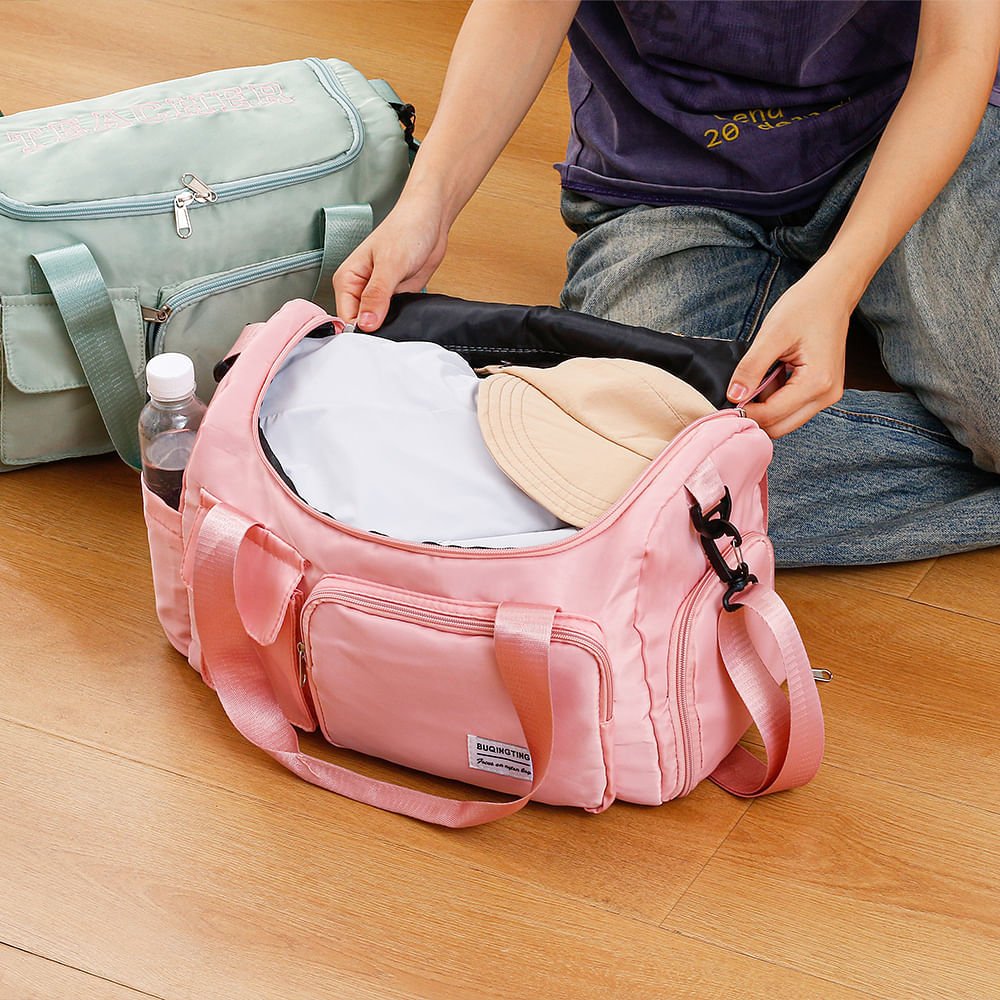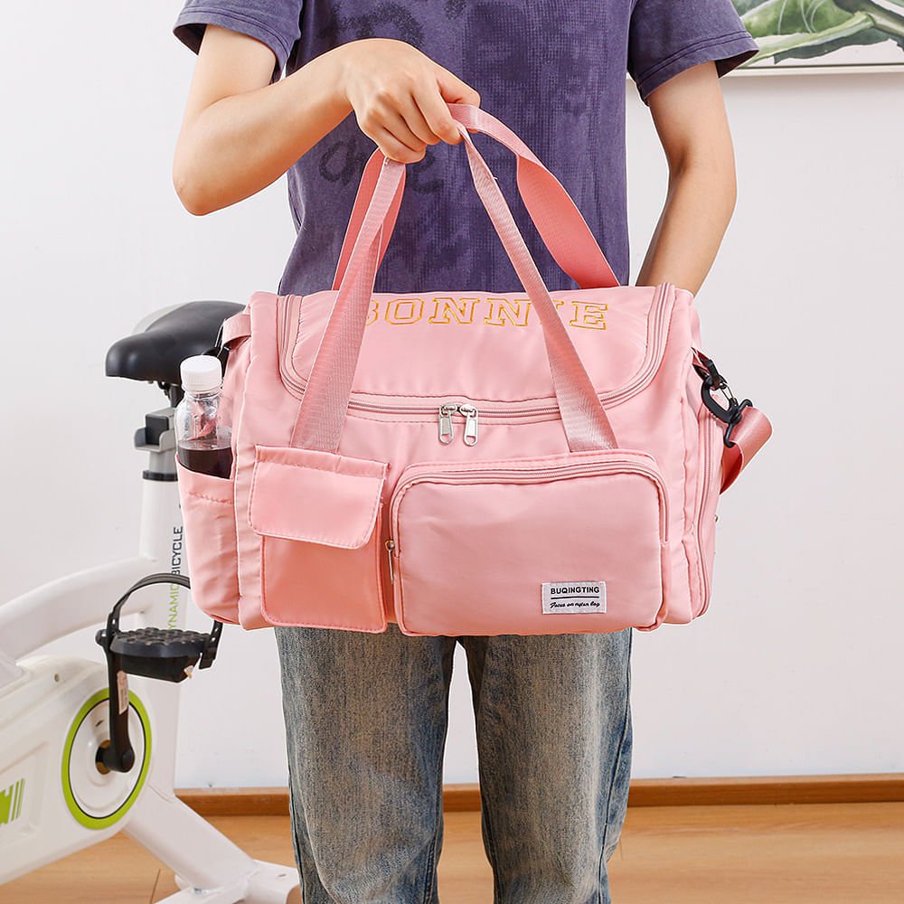 Tämä viikonloppulaukku on valmistettu korkealaatuisesta nailonmateriaalista, joka on vedenpitävä ja kestävä. Jos lähdet ulos sateisena päivänä, se voi tehokkaasti estää sadeveden ja estää laukussa olevien tavaroiden kastumisen. Siinä on myös tietty kulutuskestävyys, joka estää laukun kulumisen, kun se joutuu kosketuksiin karkeiden esineiden kanssa.